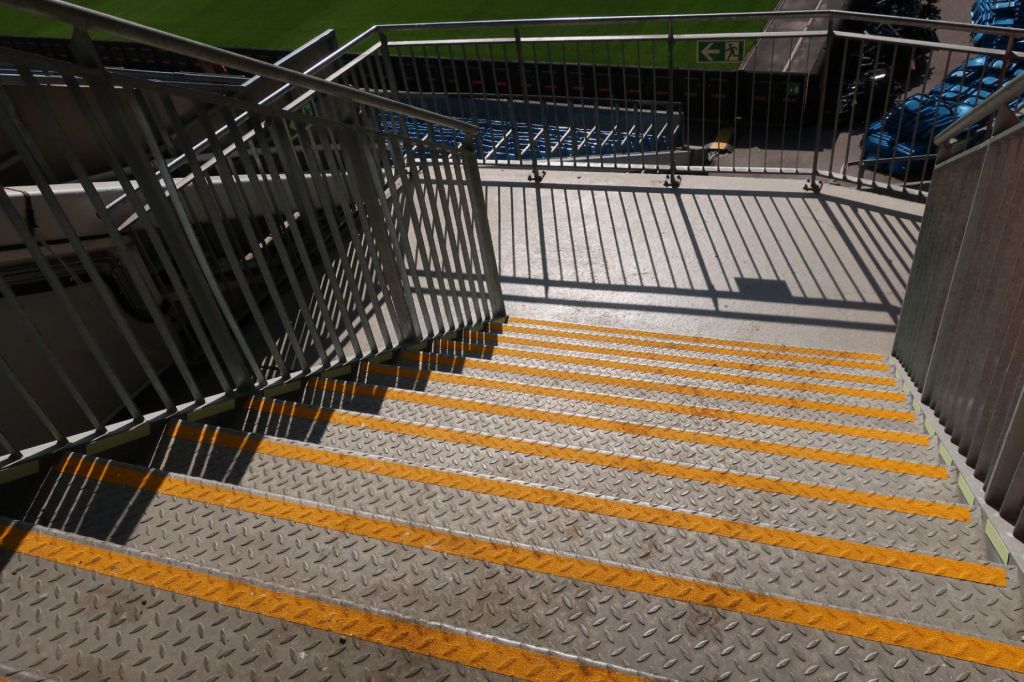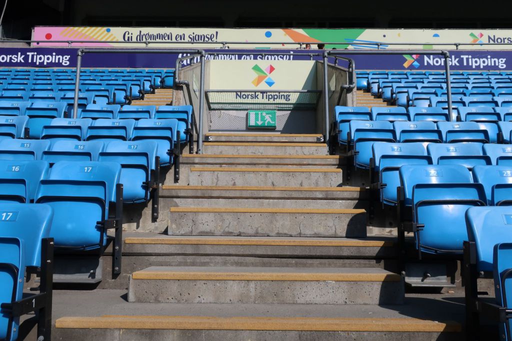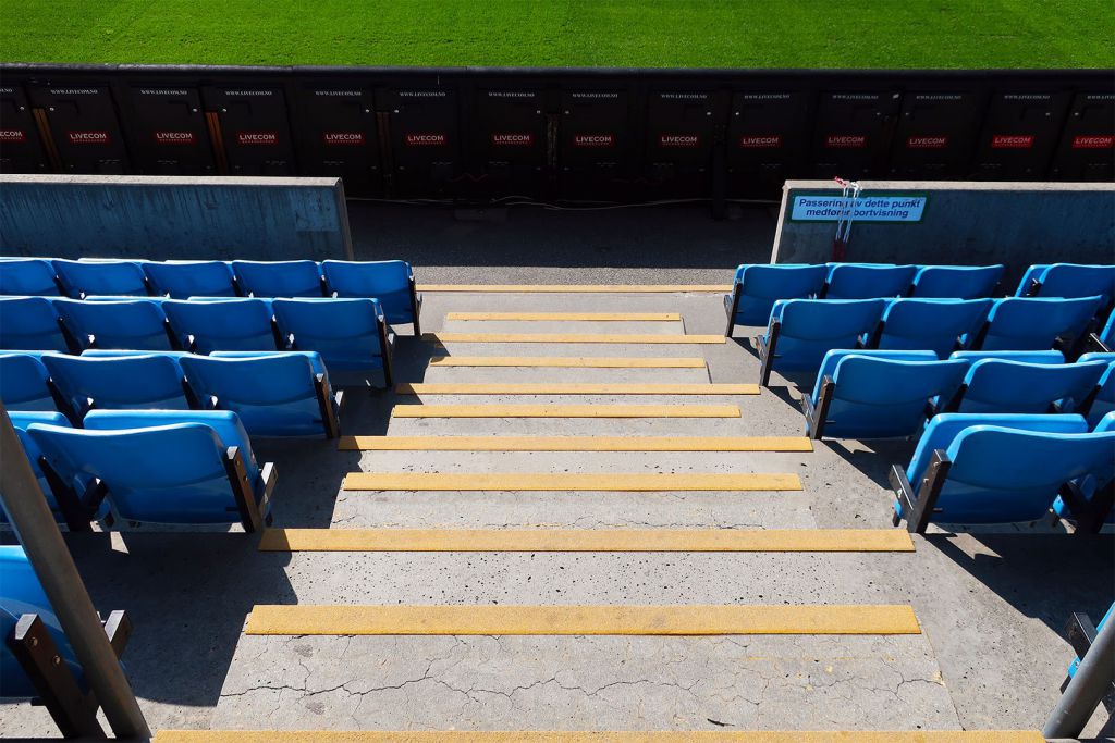 Safedeck har i 2018 og 2019 ferdigstilt tribuneanlegg med 5000 meter trappeneser i gul glassfiber. De gir høy visibilitet, god sklisikring og særdeles slitesterk. Man trenger ikke årlig å tenke på malingsløsninger o.a som slites raskt. Vi gir her 10 års garanti.