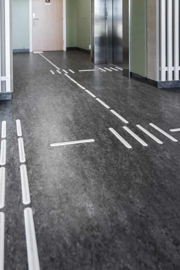 Taktil merking og ledelinjer sørger for at personer med nedsatt synsevne kan orientere seg trygt og effektivt både i bygg og utendørs.